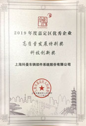 2020年1月获得上海市嘉定区人民政府颁发的“科技创新奖”